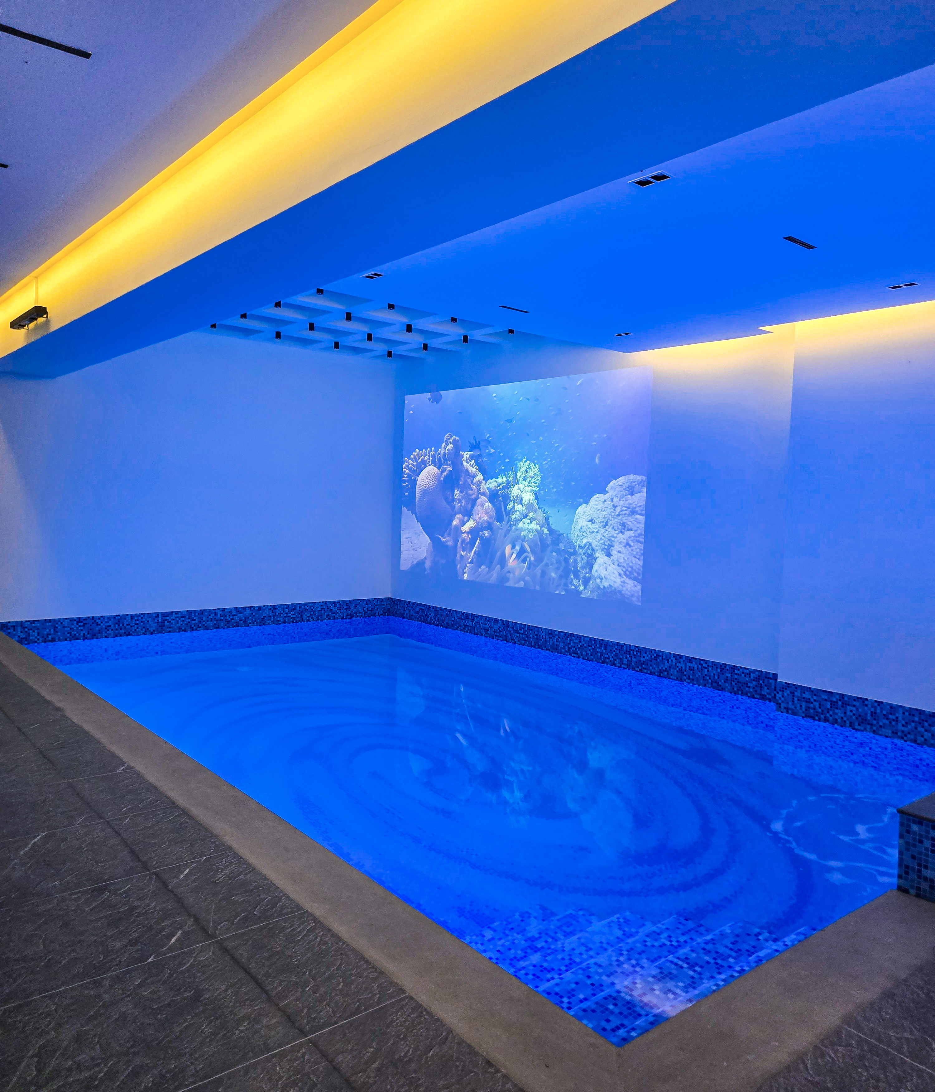 Celebrate your special day in style with a serene poolside atmosphere, gentle water sounds, ambient music, and a high-quality projection setup — perfect for an unforgettable birthday celebration under the open sky.
